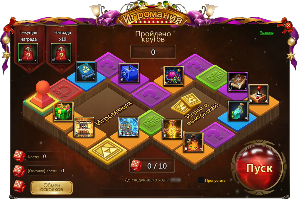 Участвуйте в событии «Игромания», бросайте кости и получайте отличные призы! Перемещайтесь по игровой доске и пройдите как можно больше кругов.