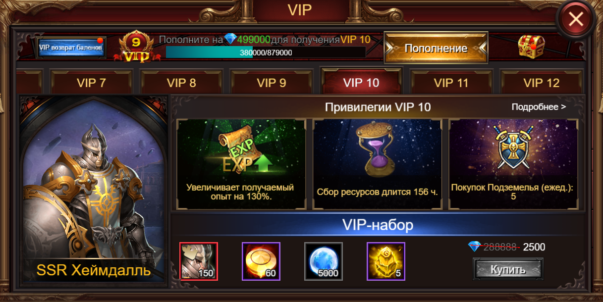 Posted 13 Dec 2019 Герои, уже доступно декабрьское обновление! Новые сеты 50+ - в игру добавлены новые сеты брони и оружия для 50+. Их характеристики выше, чем у легендарных, так что вам, герои, они несомненно придутся по вкусу. Сет 1 имеет ограничение 50+ по уровню (его можно получить в Кузнице (вкладка «Повышение»). Сет 2 не имеет ограничения по уровню (приобретается в vip-наборе). При сборе двух предметов из сета заменяется один навык. У каждого сета свой уникальный навык, улучшающий характеристики вашего персонажа. Хеймдалль становится наемником ранга SSR. Он более недоступен в качестве награды за первый платеж и доступен в магазине межсерверной арены за 13000 осколков. Новые VIP-уровни - была переработана система VIP, вам снова доступны пакеты предыдущих уровней, а также больше новых привилегий. А также: Событие «Неделька» теперь продлено до «Двухнедельки» - теперь доступны два раунда по 7 дней; Различные исправления багов С уважением, команда Eternal Fury 1 person likes this Share this post Link to post Share on other sites