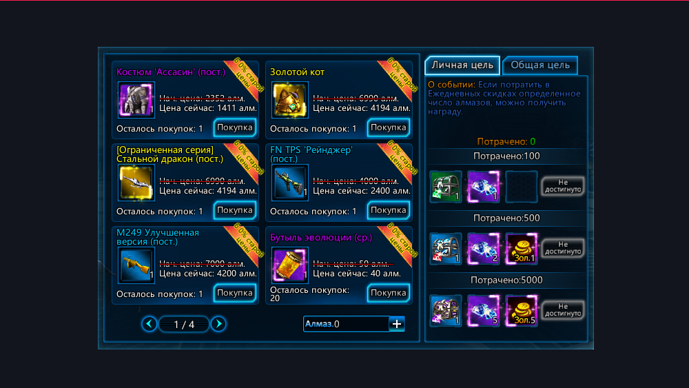 Posted 13 Nov 2017 Бойцы! Каждый из вас должен быть в курсе событий, ожидающих нас в игре с 13 по 19 ноября! «Ежедневные скидки» 13-19 ноября Во время ивента вы можете приобрести с большой скидкой множество предметов для усиления вашего персонажа. «Шопоголик» 13-14 ноября Награды выдаются за покупку от 30 алмазов. Больше тратите, больше получаете - поэтому ни в чем себе не отказывайте! «Возврат расходов»14-15 ноября За трату алмазов вы будете получать бонусный возврат в виде призовых алмазов. «Рейтинг расходов» 15-17 ноября Первая вкладка предлагает получить награды в рейтинге за траты от 1000 алмазов, а вторая - за все три дня, но попадание в рейтинг возможно при расходах от 3000 алмазов. «Золотые яйца» 16-17 ноября За пополнение счета от 100 алмазов вы сможете получить дополнительную награду. «Колесо фортуны» 16-22 ноября За золото, призовые алмазы и алмазы пополнения вы можете получить награды, представленные в различных слотах этого игрового функционала. Список активностей будет дополняться по мере старта активностей. Не забывайте заглядывать на форум, чтобы узнать о конкурсах, которые проходят прямо сейчас! Обсудить эту новость вы можете здесь и в нашей группе в ВК. ID официальной группы в RaidCall - 80123. С уважением, Команда Dark Times 1 person likes this Share this post Link to post Share on other sites
