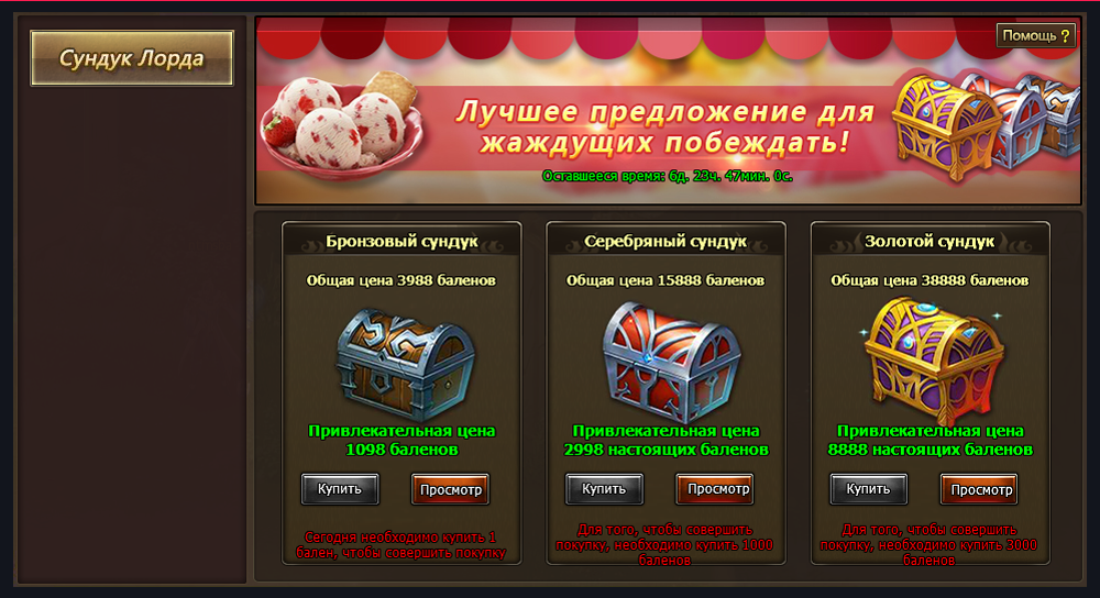 5.    С 18 по 24 января вы можете активировать акцию «Сундук лорда» - и получить ценную награду.
