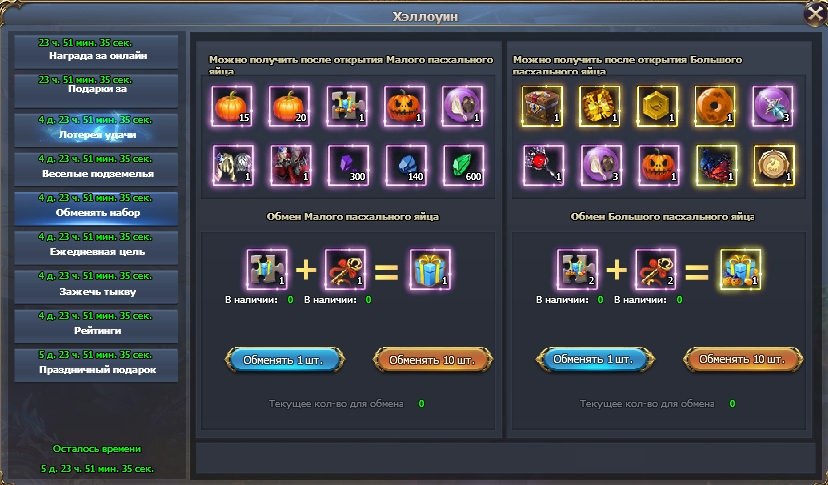 Posted 29 Oct 2020 Уважаемые игроки! 30 октября, с 5:00 (МСК) все серверы игры будут закрыты для проведения технических работ. Ориентировочная длительность ~ 2 часа. При возможности игра будет доступна раньше. Во время технических работ на серверах пройдет подготовка к запуску внутриигровых событий и обновления, о которых мы расскажем вам прямо сейчас! Новый спирит Святое оружие драконов Игроки, которые достигли лимита прокачки спиритов - а таких много - будут рады продолжить усиливать этот функционал с открытием новых уровней: Активация нового спирита происходит на 700 уровне. Новое звание и уровни в меню "Рыцарь" Игроков ждут новые цели в меню "Рыцарь": повышайте уровень и БМ, прокачку различных аспектов персонажа - и станьте Рыцарем штормового царя драконов! Новая карта Справочника Вас ждет новая карта "Молото Тора", которая поможет повысить показатели Крита. Максимальная прокачка - 50 уровень - добавит вам 512 единиц крита. Изменения в прокачке Маунтов, Костюмов и Крыльев персонажа - максимальный уровень развития для маунта, костюма и крыльев персонажа теперь 9 - максимальный уровень прокачки навыков маунта, костюма и крыльев персонажа увеличен до 40 - максимальное зачарование маунта, костюма и крыльев персонажа увеличено до 1400 Хэллоуинские новинки В честь Хэллоуина в игру добавлен новый титул - Внушающий страх, параметры которого никого не оставят равнодушными. Появился новый уникальный маунт - Громовержец. Этот огромный двуглавый дракон своими крыльями порождает грозу, заслоняя солнце: Также любителей выглядеть сногсшибательно порадует новый комплект Имперский банкет: утонченное полупрозрачное платье для девушек, изысканный костюм с плащом для рыцарей, меч и посох в качестве оружия. Новый костюм определенно станет одним из самых желанных: Титул, маунт и костюм можно будет получить в ходе ивента, о котором мы расскажем прямо сейчас. Хэллоуин 30 октября начнется событие Хэллоуин, длительность которого составит 8 дней. За онлайн вы сможете получить ключи набора, кристаллы, розы и многое другое. За пополнение счета можно будет карты таланта, анимы, камни чар, осколки нового маунта и другие ценные предметы. Собирайте наборы Хэллоуина, зажигайте тыквы - и получайте заслуженные награды. В Распродаже вас ждет уникальный титул и многие полезные предметы. Циклические события 30 октября откроется событие Таинственные сокровища, длительность которого составит 3 дня 2 ноября откроются события Рулетка для всех и Кража сундука, длительность которых составит 4 дня 6 ноября откроется событие Межсерверный рейтинг дарения цветов и Охота на сокровища, длительность которых составит 4 дня 10 ноября откроется событие Сундук выгодного возврата, длительность которого составит 3 дня События выходного дня 31 октября откроется событие Печать демона, длительность которого составит 2 дня 7 ноября откроется событие Испытание храбрых, длительность которого составит 2 дня Слияние серверов Во время технических работ на ряде серверов пройдут слияния: [s1+s2+s3+s4+s5+s6+s7] + [s8+s9+s10+s11+s12+s13+s14+s15+s16+s17+s18+s19+s20+s21+s22+s23+s24+s25] [s271+s272+s273+s274+s275+s276] + [s277+s278+s279+s280] [s281+s282+s283+s284+s285+s286+s287+s288+s289] + [s290+s291+s292+s293+s294+s295] [s296+s297+s298+s299+s300] + [s301+s302+s303+s304+s305] s306+s307+s308+s309+s310 s311+s312+s313+s314+s315 s316+s317+s318+s319+s320 На слитых серверах пройдут ивенты по особому расписанию. Также на сливаемых серверах могут отсутствовать некоторые привыч
