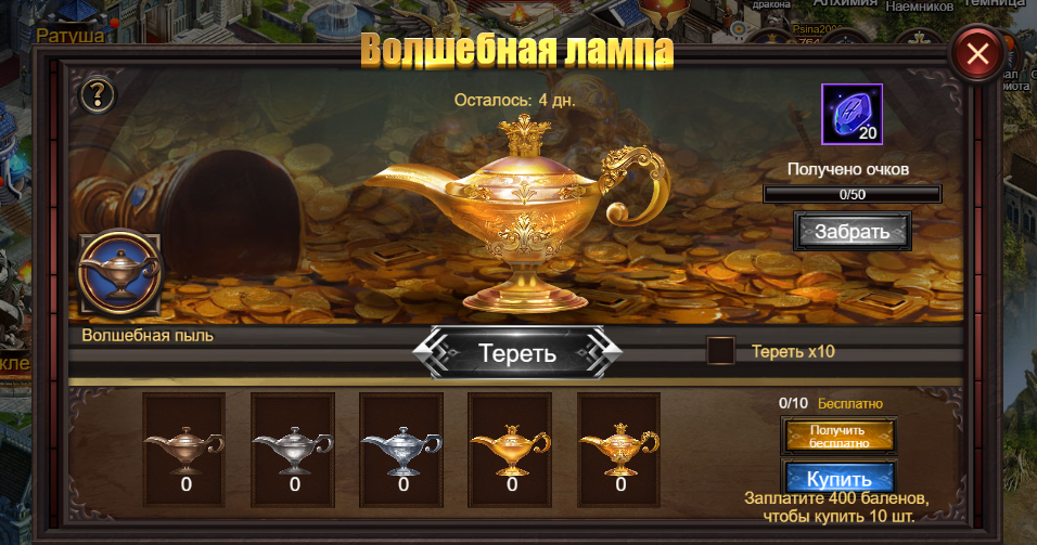 Posted 11 Nov 2020 Герои, На дворе осенняя пора, время гоячего какао и теплых пледов. Но вы же знаете, где вас ждут самые жаркие события? Вас ждут Рулетка Осеннего Карнавала и Осенний Карнавал! За каждые 10 прокруток вам будет начислено 10 очков, которые вы можете обменять на различные подарки. Осенний карнавал - получайте ценные награды и монеты для рулетки! Элитный призыв снова доступен! Получите шанс вызвать наемников более высокого ранга за меньшую стоимость. Волшебная лампа снова с нами! Каждый день вы сможете получить по 10 ламп бесплатно в течение игрового дня. Новая лампа появляется каждые 10 минут. Потрите ее и удача улыбнется вам! Также набрав определенное количество очков вы сможете получить дополнительную награду. Каждый из видов лампы содержит гарантированную награду для своего обладателя, а также возможные роскошные призы. С уважением, Команда Eternal Fury Share this post Link to post Share on other sites