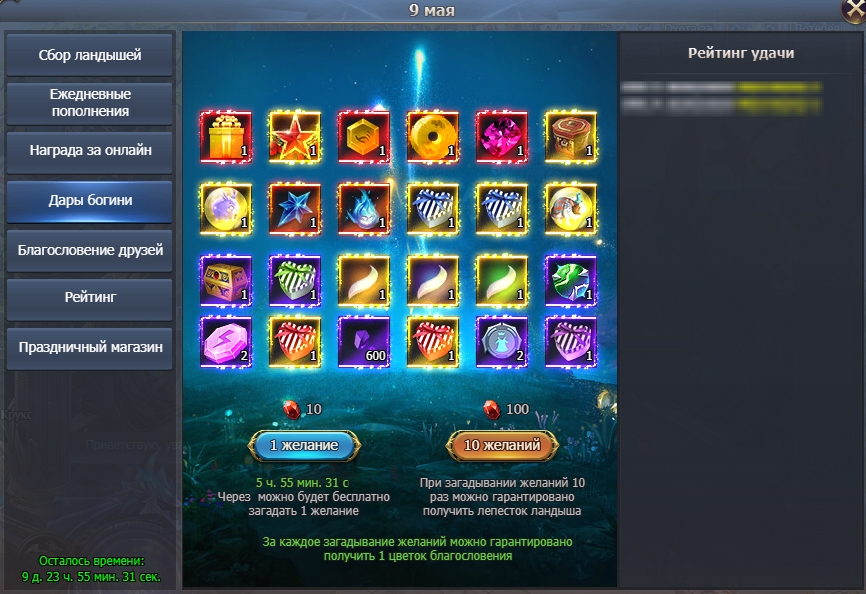 Posted 9 May 2021 В 29.04.2021 at 21:30, Администратор форума сказал: Уважаемые игроки! 30 апреля, с 4:30 (МСК) все серверы игры будут закрыты для проведения технических работ. Ориентировочная длительность ~ 2 часа. При возможности игра будет доступна раньше. Во время технических работ на серверах будет проведена оптимизация для устранения неполадок на серверах, а также пройдет подготовка к запуску внутриигровых событий, о которых мы расскажем вам прямо сейчас! Пасха 30 апреля начнется событие "Пасха". Праздник уже скоро - и время готовить пасхальные яйца! В ходе ивента можно будет получить осколки модных костюмов, маунта и маунта эльфа, а также множество других ценных предметов. 9 мая 8 мая начнется событие "9 мая". Вечная память героям! Собирайте ландыши, получайте награды за онлайн и пополнение счета! Вас ждут ценные призы, милый эльф и уникальные титулы, посвященные Дню Победы. Циклические события 30 апреля откроется событие Дворец, длительность которого составит 3 дня 3 мая откроются события Всеобщая рулетка и Кража сундука, длительность которых составит 4 дней 7 мая откроется событие Таинственные сокровища, длительность которого составит 3 дня 10 ая откроются события Холдем турнир и Кража сундука, длительность которых составит 4 дня 14 мая откроются события Межсерверный рейтинг дарения цветов и Охота на сокровища, длительность которых составит 4 дня 18 мая откроется событие Общая лотерея, длительность которого составит 3 дня События выходного дня 1 мая откроется событие Испытание дракона, длительность которого составит 2 дня 8 мая откроется событие Энциклопедический турнир, длительность которого составит 2 дня 15 мая откроется событие Печать демона, длительность которого составит 2 дня Желаем вам новых побед и ярких достижений! С уважением, Команда Dragon Knight 2 а подарки будут на 9 мая? Share this post Link to post Share on other sites