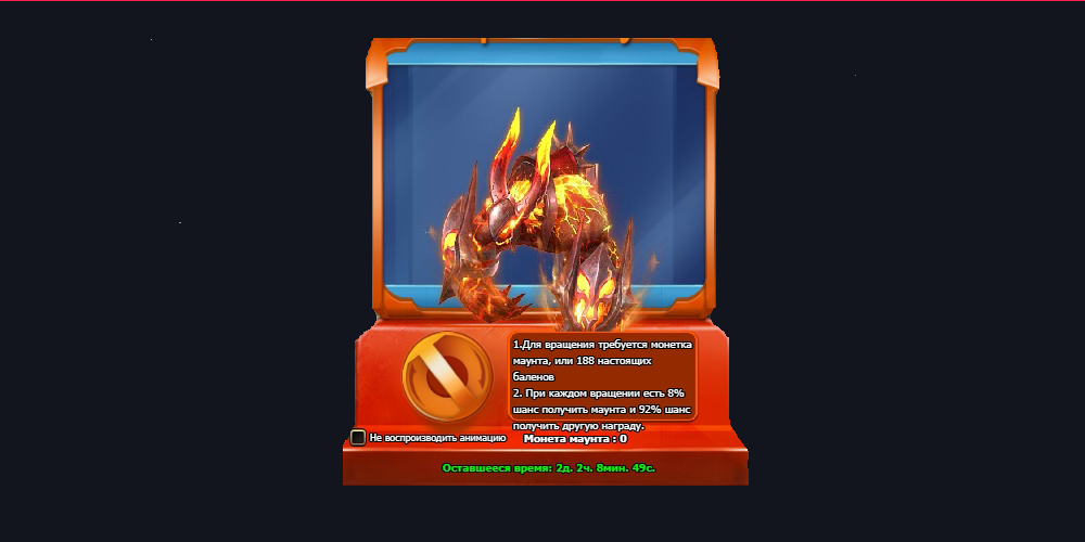 Posted 20 Mar 2019 Уважаемые игроки! 21 марта в 5:00 по московскому времени все серверы игры будут закрыты для входа в связи с проведением технических работ! Ориентировочная длительность - 2 часа. Пожалуйста, учтите данную информацию при планировании своей игровой активности! В этой новости мы расскажем о том, какие события ожидают нас в ближайшие дни. Пожалуйста, учтите, что ивенты, объявленные на 21 марта, начнутся только после открытия серверов по завершении тех. работ. 1. 21 и 22 марта пройдет акция «Добыча баленов» - удобный случай пополнить счет игровой валюты. 2. С 21 по 23 марта вращайте «Колесо призывателя» и получайте предметы для магического строя. 3. С 21 по 25 марта можно активировать «Сундук бога войны» и получать ценные призы в течение 10 дней. 4. С 21 по 25 марта открывайте «Тайны старого замка» - 1 исследование всего 20 баленов. 5. С 22 по 28 марта пройдет крупная «Распродажа» - это ваш шанс приобрести многие редкие игровые предметы по сниженной цене. 6. С 23 по 27 марта состоится акция «Золотой сундук». Пополнение счета от 1000 баленов подарит вам ценный игровой бонус. 7. С 24 по 27 марта поучаствуйте в «Рунах богатства» - серебряные кирки найдутся в Подземелье и Зале героев, а золотые можно будет купить за балены. 8. С 26 по 29 марта пройдет «Лабиринт сокровищ» - загляните под карты ивента и найдите ценные призы! 9. С 26 по 28 марта у вас будет шанс получить редких маунтов и другие ценности – проходит «Лотерея маунта». 10. С 28 марта по 1 апреля будет активная акция «Сундук сокровищ»: пополнение счета откроет доступ к ценным призам. 11. С 28 по 30 марта откроется «Мистический магазин»: добывайте руду и обменивайте ее на сокровища гномов. 12. 29 марта пройдет акция «Ограниченный возврат» - акция увеличит количество полученной призовой валюты, если вы выполните условия. 13. 30 и 31 марта пройдет ивент «Магия камней» - раскалывая камни в эти дни, вы получите бонусы. 14. С 30 марта по 3 апреля откроются двери «Королевской винодельни»: ежедневные бесплатные винные бочки откроют доступ к игровым подаркам. А если их окажется мало, всегда можно будет докупить. 15. С 31 марта по 3 апреля проходите Подземелья и Зал героев, чтобы получить серебряные монеты для «Статуи дракона». Золотые монеты можно приобрести за балены. 16. С 1 по 3 апреля можно активировать акцию «Большая сумма»: пополнение счета и покупка бонуса принесут огромную прибыль. 17. 2 и 3 апреля пройдет «Сбор урожая» - денежное дерево поделится с вами призовой валютой, если вы пополните счет хотя бы на 500 баленов. Желаем вам приятной игры и новых побед! Обсудить эту новость вы можете здесь или в группе ВКонтакте. С уважением, Команда Dragon Knight Share this post Link to post Share on other sites