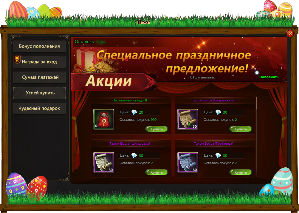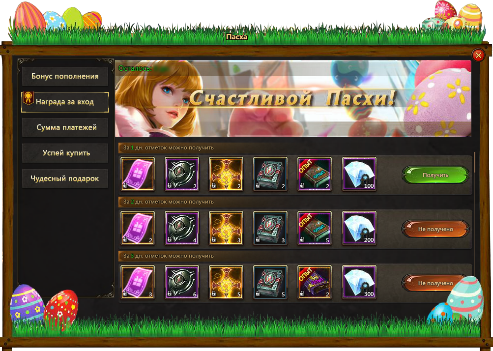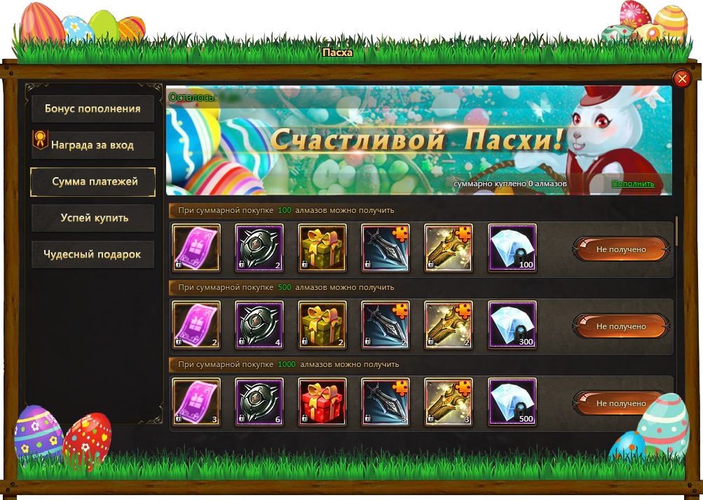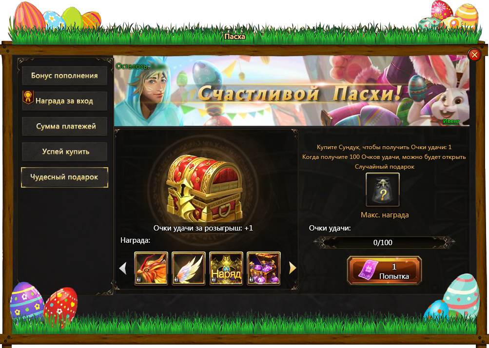 Уважаемые игроки! Подарки по случаю Пасхи выданы. Пожалуйста, проверьте внутриигровую почту.
